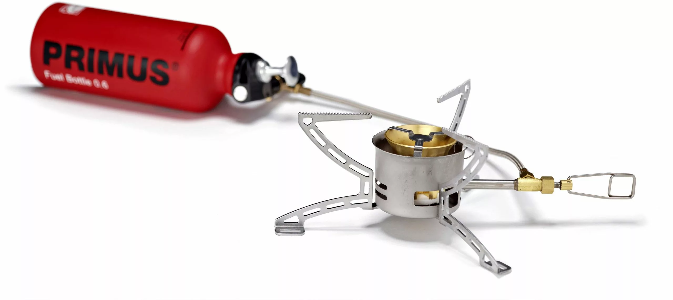 Det nya kastrullstödet säkras i låst läge när de fällts ut och fälls ihop kompaktare än tidigare. Munstyckena är tydligt markerade för respektive bränsle och fästa vid kastrullstöden, så att de inte tappas bort. Kan användas med i stort sett alla typer av bränslen, inklusive gas, kemiskt ren och blyfri bensin, fotogen, diesel samt flygbränsle och med sina 3000 watt har OmniFuel II kraft över att avvara. Med hjälp av det separata bränslereglaget kan du finjustera lågan även när du bär handskar. Det här är ett komplett set som levereras med en bränsleflaska, ErgoPump™, ett multiverktyg med rensnål, ett vindskydd, påse och en värmereflektor.