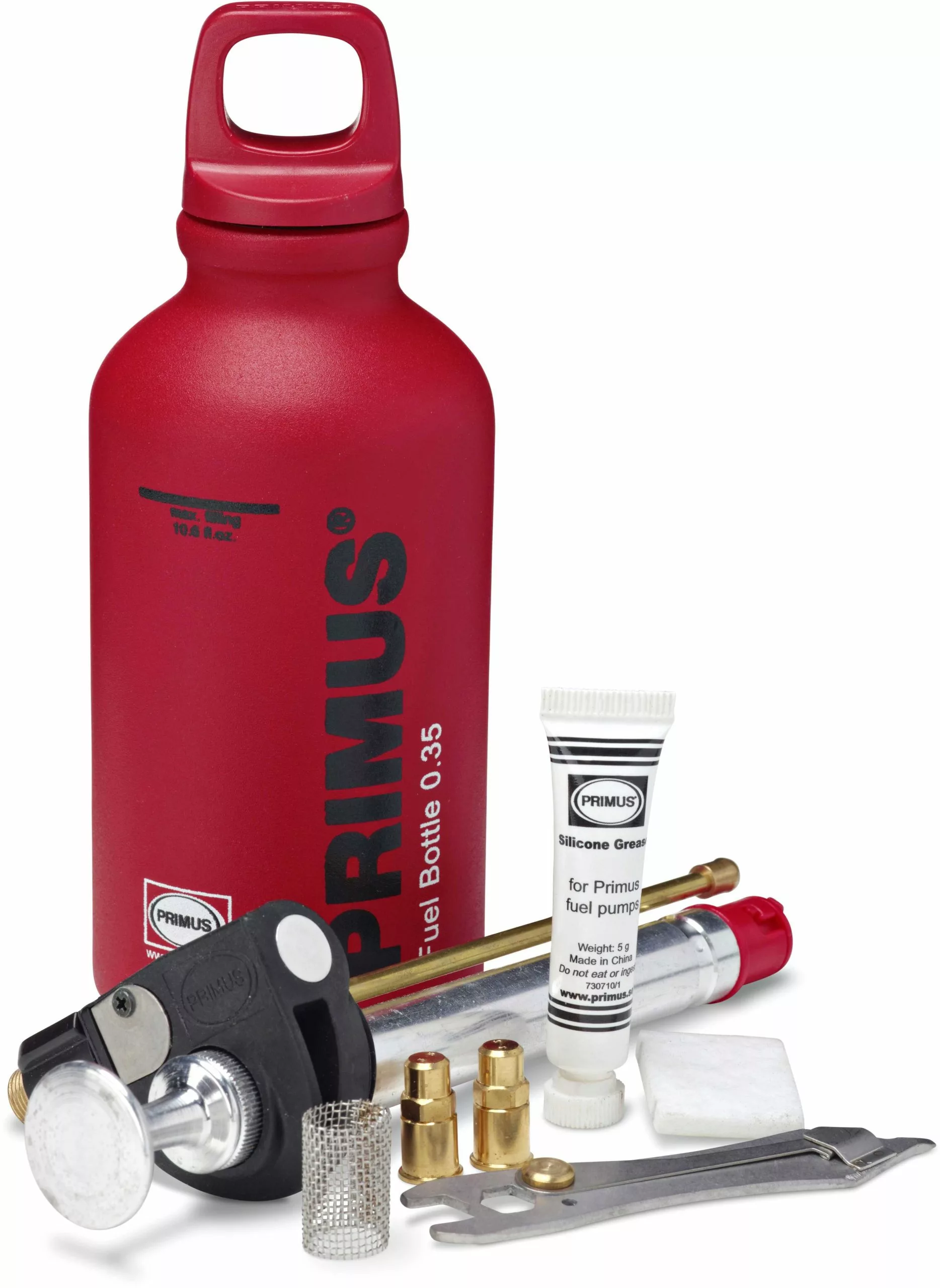 Med Primus Spider Stove/Express Spider Multifuel Kit är ett uppgraderingstillbehör till gasversionerna av Spider Stove och Express Spider Stove. Möjliggör användning av flytande bränslen såsom kemiskt ren bensin, blyfri bensin och i nödfall även fotogen. Kittet består av en 0,35 liters bränsleflaska, en ErgoPump, ett multiverktyg med rensnål samt munstycken och även en praktisk packpåse.