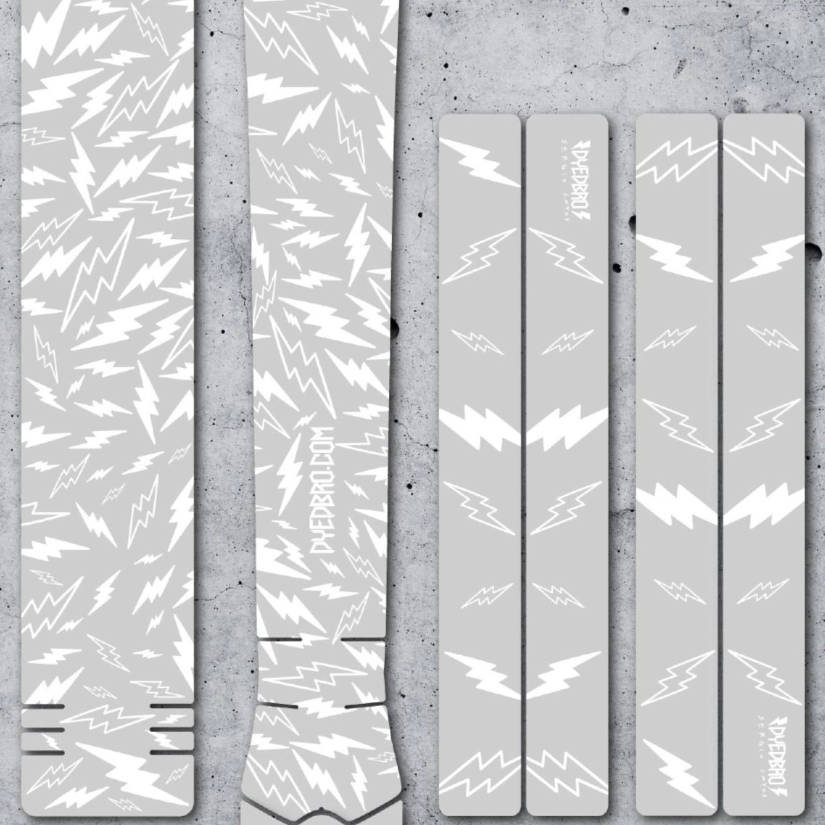 DYEDBRO Sergio Layos Signature Edition White är ett ramskyddspaket för ramen på din cykel. Cyklar man aktivt i skog, stig och terräng brukar ramen få ta en hel del stryk. Med ramskydd slipper du massor med repor och lackskador. I det här utförandet får du ett mönster tillägnat en av världens bästa BMX åkare Sergio Layos ; som nu även rippar hårt på MTB. Du får vitt tryck med genomskinlig bakgrund så att färgen på din ram lyser igenom. Passar alla ramar och cyklar.