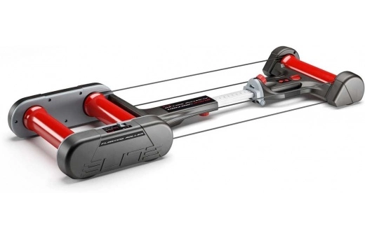 Eurobike Bike Gold vinnaren Elite Quick-Motion är en supersmart trainer med tre perfekt balanserade rullar med 85 mm i diameter som upprätthåller en jämn vägliknande känsla under dina träningspass. De paraboliska rullarna (med 100 mm diametrar i ändarna) garanterar enkel och exakt kontroll, eftersom formen automatiskt leder cykeln in mot rullens mitt. Stabilitet, förutsägbarhet och säkerhet förbättras ytterligare tack vare det optimerade avståndet mellan de två bakre rullarna.