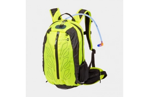 M-Wave Rough Ride Back är en rejäl ryggsäck på 15 liter med vätskebehållare på 2 liter. En slang med ett drickmunstycke gör det smidigt att dricka under cykelturen. Ett höftbälte gör att den sitter ordentligt på plats på ryggen. Den är tillverkad i vattentätt material. Du har ett ytterfack och två sidofack i nät, ett nät för hjälmen och flera fack invändigt.