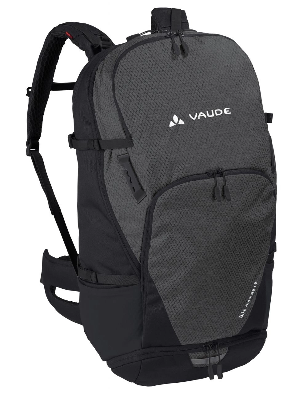Den högklassiga Vaude Bike Alpin 25+5 är en mycket bekväm ryggsäck som är perfekt anpassad för utmanande cykelturer i ute terrängen. Expanderbar och anatomiskt anpassad för cykling och fullproppad med massor av praktiska funktioner som hjälmhållare, fäste för cykellampa, nyckelhållare, kombinerat med ett rymligt huvudfack och avdelande organiseringsfack. Bärsystemet Aeroflex 3D ser till att packning känns stabil och ger samtidigt skön komfort och bra ventilation, helt perfekt för lite mer krävande typer av cykling.