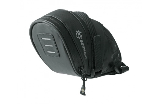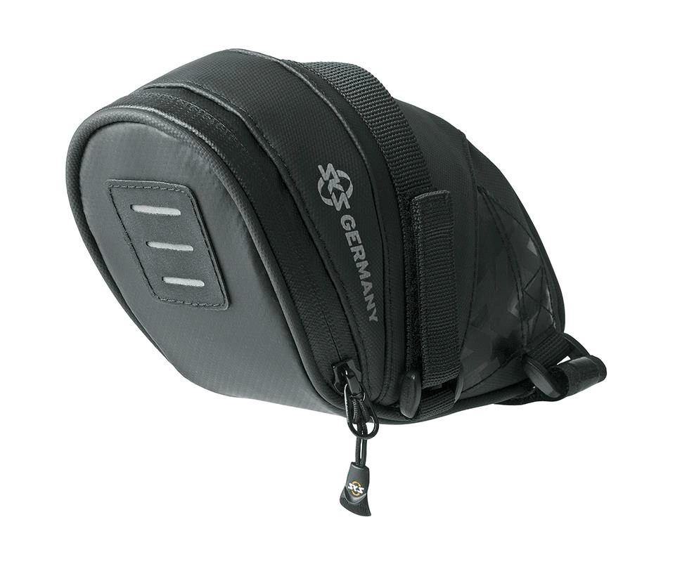 Robust och hållbara sadelväskan SKS Explorer Straps 800 är tillverkad av ett gummerat och vattenbeständigt material som gör den till ett måste för kräsna mountainbikecyklister. Den erbjuder mycket gott om utrymme för verktyg, en innerslang och andra personliga föremål. Den imponerar med andra funktioner, såsom laminerade dragkedjor och ett praktiskt orangefärgat foder som göra det lättare att hitta rätt föremål. Väskan fästs på sadeln med robusta kardborrefästen och reflektiva detaljer som garanterar ökad säkerhet i mörka förhållanden.