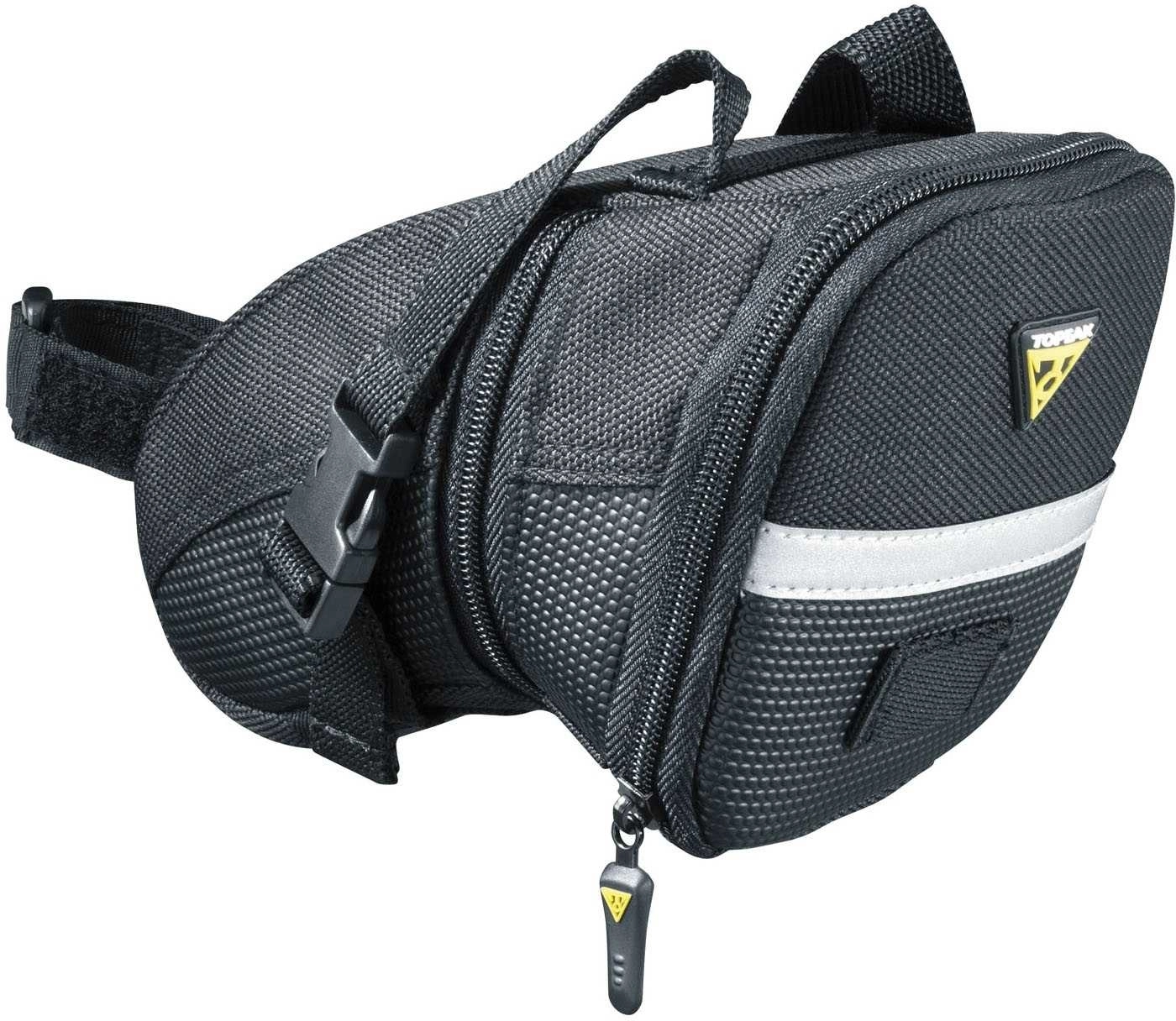Topeak Aero Wedge är en liten sadelväska som sitter med rem i sadelrailsen. Vattenavisande. Slimmad design så att den inte är i vägen när man trampar.Teflonskyddad polyester. Fäste för lampa.