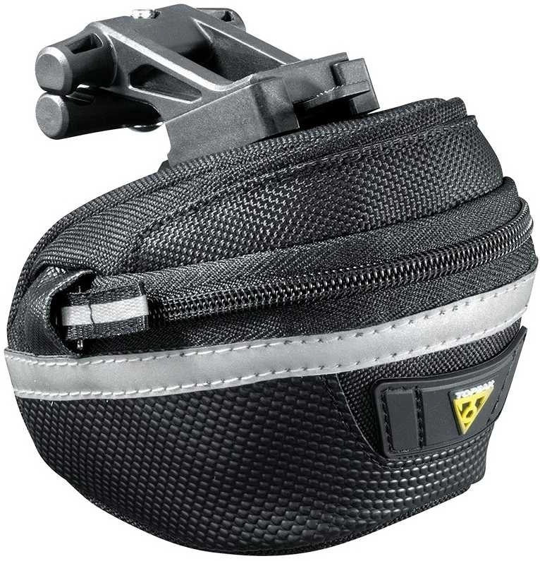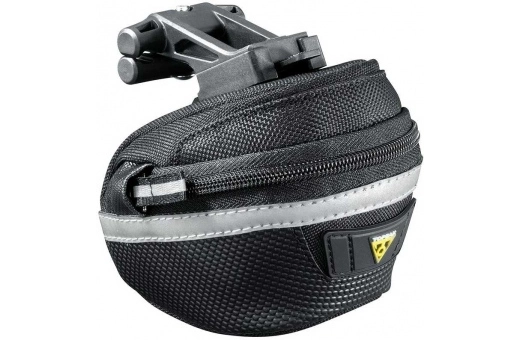 Robusta och slitstarka Topeak Wedge Pack II Micro är en sadelväska i 1000 denier nylon som är lätt att komma åt och hantera när du behöver tillgång till sakerna du har i den. Den har fäste för bakre lampa och givetvis reflexdetaljer. Den är QuickClick-kompatibel och kan därför snabb och enkelt flyttas mellan olika cyklar.
