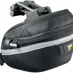 Robusta och slitstarka Topeak Wedge Pack II Small är en sadelväska i 1000 denier nylon som är lätt att komma åt och hantera när du behöver tillgång till sakerna du har i den. Den har regnskyd, fäste för bakre lampa och givetvis reflexdetaljer. Den är QuickClick-kompatibel och kan därför snabb och enkelt flyttas mellan olika cyklar.
