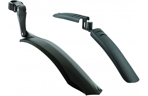 Hebie Viper X 26-29″ en riktigt bra och lättmonterad skärmsats för dig som har en heldämpad mountainbike, men skärmsatsen passar lika bra på mountainbikes utan bakdämpare. Bakskärm monteras enkelt på alla sadelrör eller sadelstolpar upp till 42 mm i diameter. Bakskärmen kan vinklas steglöst i två leder, vilket gör det enkelt att anpassa den efter bakdäcket. Längd framskärm ca. 60 cm och bakskärm 61 cm.