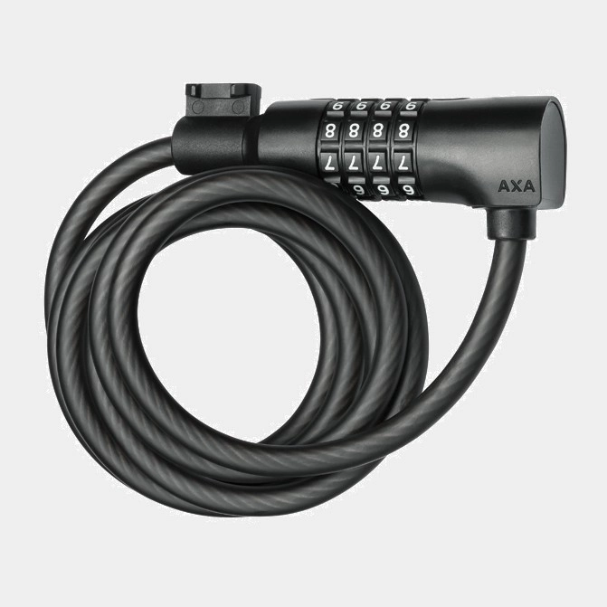 AXA Resolute C 180 är ett smidigt spirallås med kodlåsning och medföljande fäste för ramen eller sadelstolpen. Låset har 4-siffrig kombination som du ställer in enkelt själv. Vajern är 180 cm lång och 8 mm tjock och täckt med mjuk plast som skyddar din cykel. Passar utmärkt för kortare stopp eller som komplement till säkrare lås. Skyddar mot opportunist-tjuven.