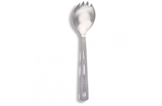 Optimus Titan Spork är en kombinerad gaffel och sked i mycket tålig titanlegering. Titan Spork är ultralätt och kommer med en praktisk öppning för att hänga i en minikarbin. Teknisk Specifikation: Längd: 16,5 cm Vikt: 17 gram