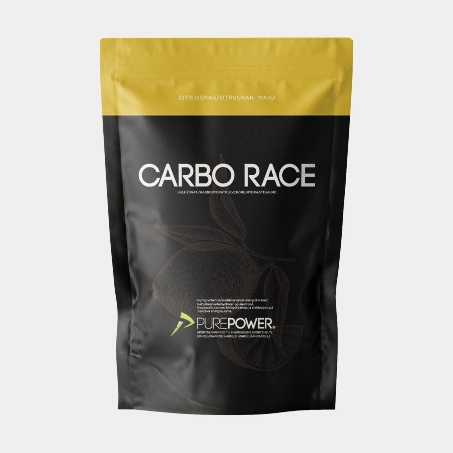 Purepower Carbo Race Elektrolyt är en energidryck med citrussmak som du har med dig under träning eller tävling. Du blandar lätt ut pulvret med vatten i din vattenflaska.