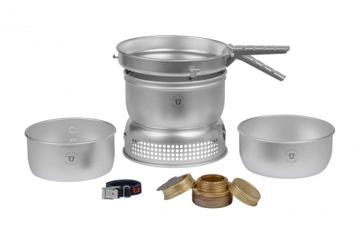 25 serien innehåller de lite större kärlen, som lämpar sig för sällskap på 3-4 personer. Det är utmärkta familjekök, med rymliga kokkärl, en vidare stekpanna och större kaffepanna. Med hållarna i uppfällt läge kan köket kombineras med större lägerkittlar ur det övriga Trangiasortimentet.