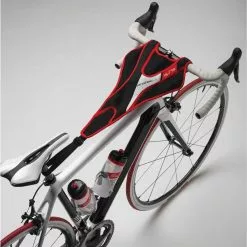 Elite svettskydd Protec Plus gör som namnet säger – skyddar din cykel från droppande svett orsakat av hård träning på din trainer. Handdukar funkar ju också men denna lilla pryl är 100 gånger smidigare och sitter säkert på plats under hela passet. Enkel montering med resårband som träs över sadeln och kardborreband vid styret.