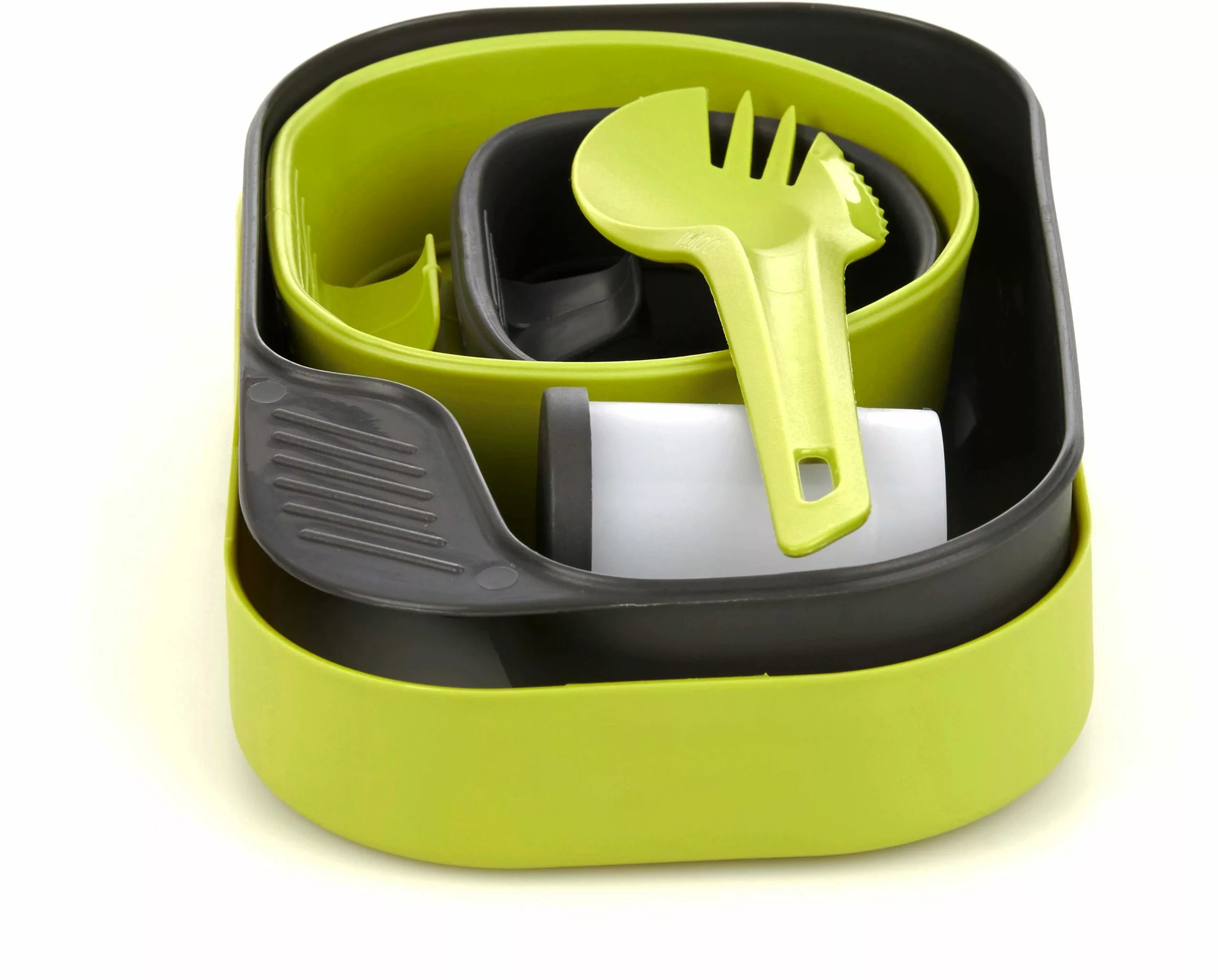 Lätt och smidig tallrikslåda med allt du behöver, Innehåller tallrik, kryddkar, Två storlekar vikkoppar och kombinerad gaffel, kniv och sked. BPA Fri.