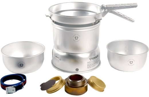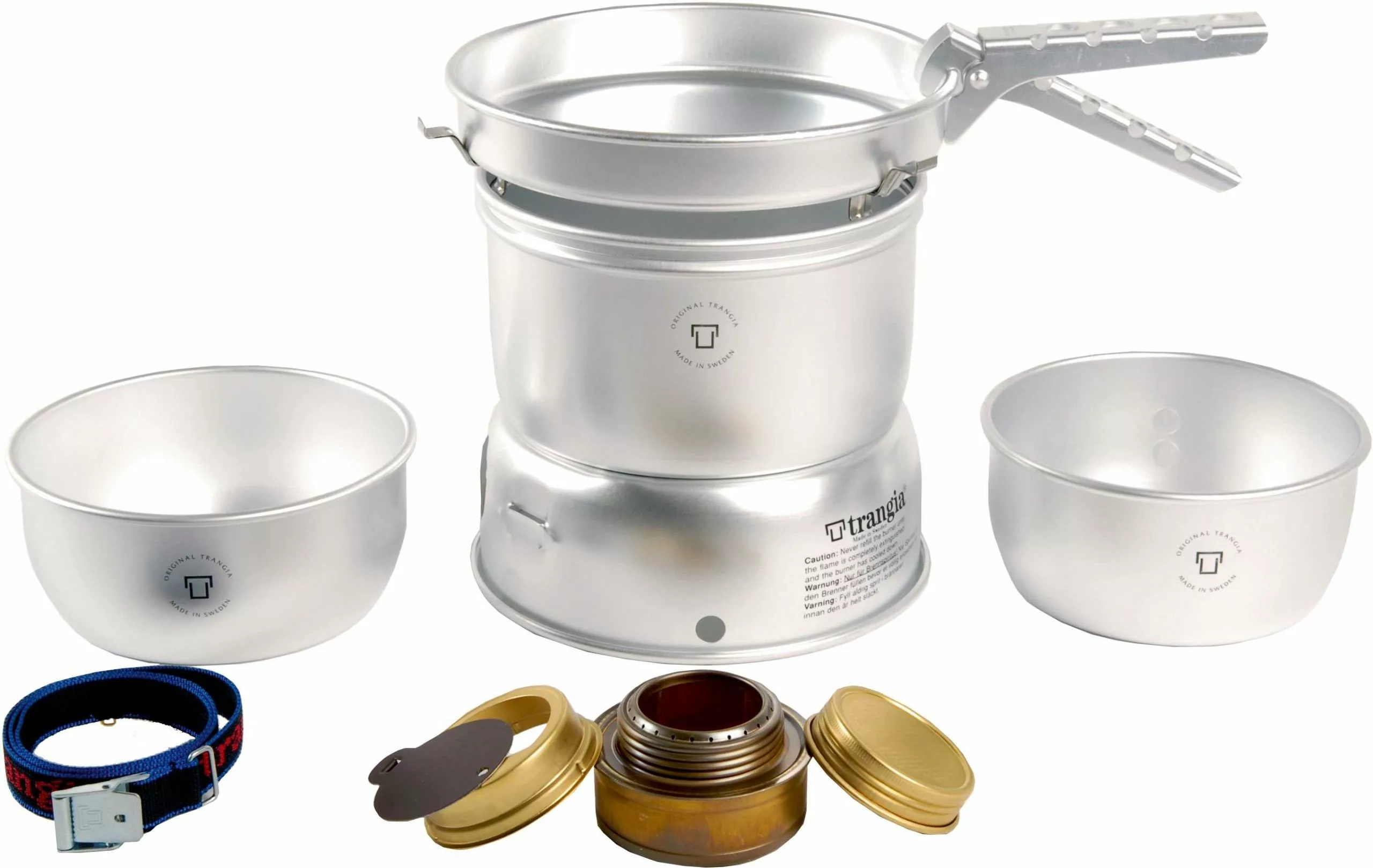 Trangia Stormkök 27-1 UL (ultralight aluminium) ingår i 27 serien som innehåller kök som passar bra för ensamvandraren eller två personer. Kokkärlen är mindre och kaffepannan dimensionerad därefter. Ett litet, kompakt kök som kräver minimalt utrymme i ryggsäcken. Även här går det att komplettera med större lägerkittlar som kan ställas på de uppfällda hållarna i det övre vindskyddet.