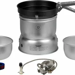 Trangia Stormkök 27-3 UL/GB (ultralight aluminium) ingår i 27 serien som innehåller kök som passar bra för ensamvandraren eller två personer. Kokkärlen är mindre och kaffepannan dimensionerad därefter. Ett litet, kompakt kök som kräver minimalt utrymme i ryggsäcken. Även här går det att komplettera med större lägerkittlar som kan ställas på de uppfällda hållarna i det övre vindskyddet.