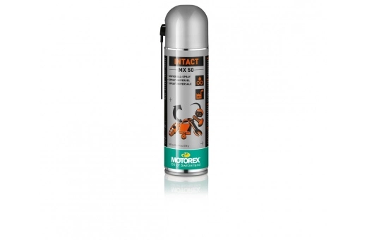 Universalsprayen Motorex INTACT MX 50 Spray smörjer alla typer av rörliga delar. Den tystar gnissel, ger optimalt skydd av metallytor och håller dessutom verktygen i bra skick. Lämnar en mycket effektiv skyddsfilm efter sig som tränger undan fukt och förhindrar korrosion.