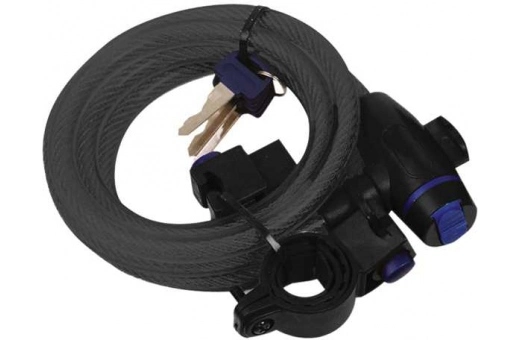 OXC Cable Lock 12mm x 1800mm är ett kabellås med en lång vajer som är belagd med ett skyddande skikt av vinyl för att skydda cykels lack.