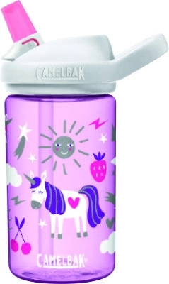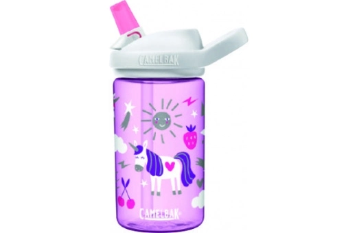 Camelbak Eddy+ Kids .4L är en praktisk, lätt och hållbar vattenflaska för barn, som nu levererar 25% högre flöde än tidigare versioner. Flaskan tillverkas av Eastman Tritan™ Copolyester, ett till hälften återvunnet material som kan återvinnas igen, är fri från BPA-, BPS- och BPF-kemikalier, och som gör flaskan transparent och slittålig. Locket är utrustad med ett bärhandtag, och som förhindrar stänk, dropp, smuts och läckage. Locket tillverkas av BPA-fri polypropylen. Wide-mouth-öppningen gör det enkelt att fylla på is och förenklar rengöringen, och är kompatibel med Chute®Mag och Hot Cap-lock. Kan diskas i diskmaskin. Fri från BPA, BPS och BPF.