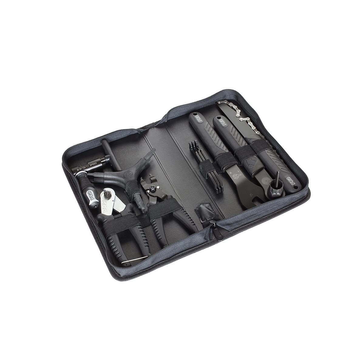 Verktygskit PRO Starter Toolkit innehåller 11 olika verktyg som sammanlagt har 13 olika funktioner. Kanske den perfekta lilla verktygslådan för alla mekaniker som siktar mot att bli fullfjädrade proffs. I de mjuka lilla fodralet hitta du verktygen som behövs för att ta bort eller installera en kassett, ställa in kedjans längd, trimma växlarna och bromsarna, installera eller ta bort pedaler, installera eller ta bort snabblänkar och installera eller ta bort däck.