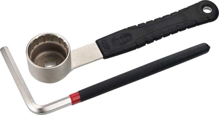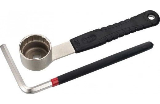 Verktygsset för vevlager med yttre skål. Vevarmsnyckel 10 mm insex samt en nyckel till den yttre skålen. Passar Campagnolo Ultra-Torque, Shimano Hollowtech II, Truvativ GXP, RaceFace X-types samt FSA Mega-Exo.